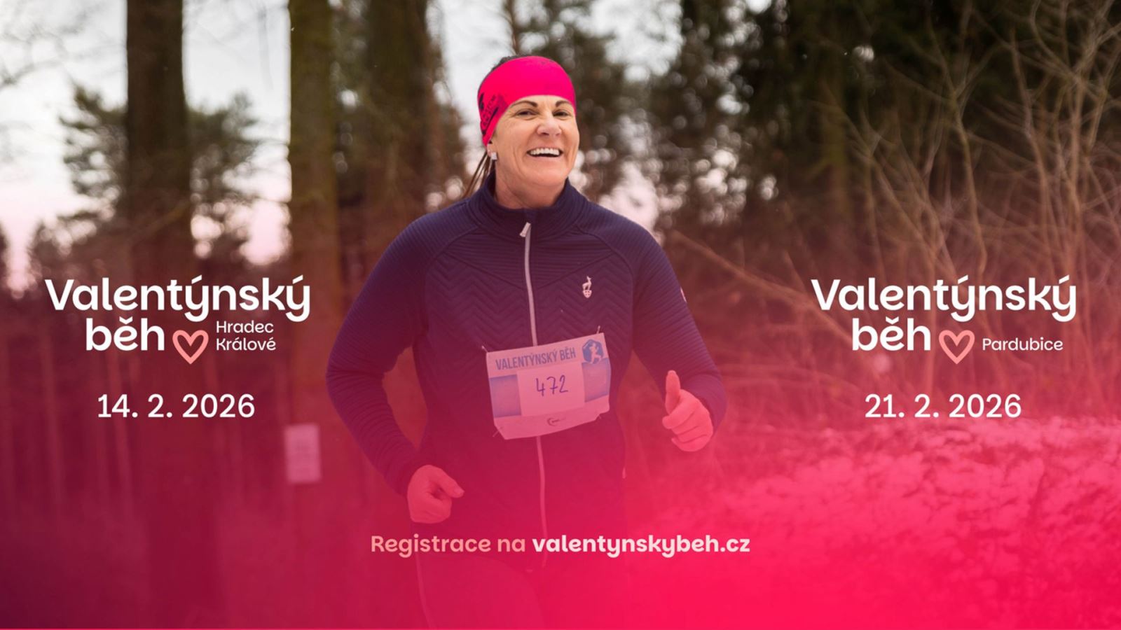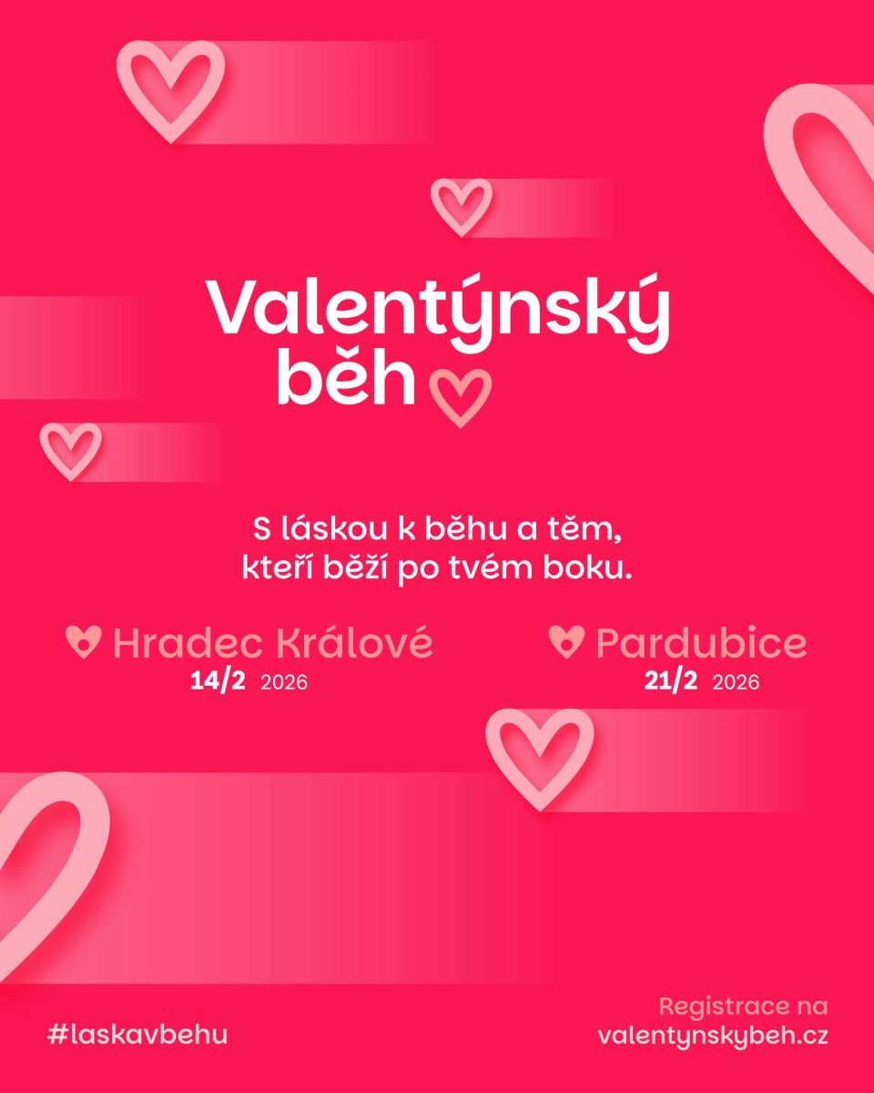Valentýnský běh má za sebou již 5 úspěšných ročníků v Hradci Králové a v roce 2026 poprvé rozšiřuje svou tradici také do Pardubic. Čekají vás dvě jedinečné lokality, skvělá atmosféra i pestrý program, který potěší nejen páry a zamilované, ale všechny milovníky běhu. V Hradci Králové se Valentýnský běh uskuteční 14. února 2026 se startem v Kempu Stříbrný rybník a nabídne trasy na 5 km, 11 km a také Canicross na 5 km. O týden později, 21. února 2026, přivítají závod poprvé také Pardubice – a to v nádherných kulisách Zámku Pardubice, kde budou připraveny trasy na 5 a 10 kilometrů. Registrace pro oba závody se otevírají symbolicky 14. listopadu ve 14:00. Vyberte si lokalitu, která je vašemu srdci nejbližší, a užijte si začátek běžecké sezony 2026 s láskou k běhu.