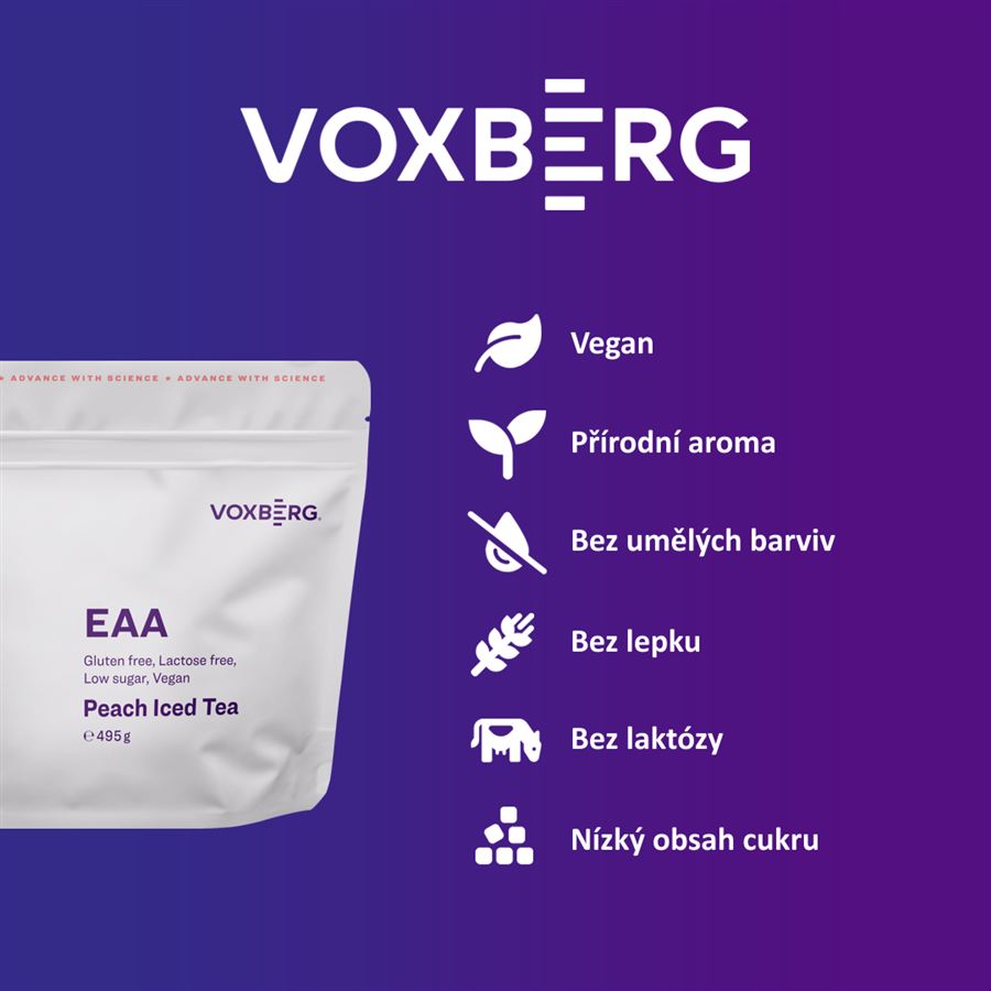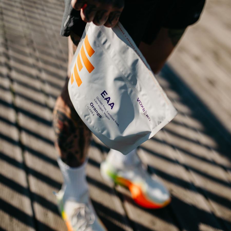 EAA dodávají vašemu tělu esenciální aminokyseliny, které potřebujete pro svůj výkon a udržení svalové hmoty, a to tím nejefektivnějším možným způsobem. Jsou vhodné pro vegany, neobsahují žádný přidaný cukr a k jejich ochucení používáme pouze přírodní aromata. EAA představují ještě efektivnější formu regenerace než BCAA, jde o 9 esenciálních aminokyselin, které významným způsobem podporují svalová vlákna. Pro oddálení pocitu únavy, bolesti a prodloužení výkonu lze užívat už během výkonu.