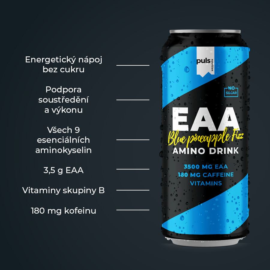 Funkční Amino Energy. Energie a výkon s ananasovým nádechem – dopřejte si pořádnou vzpruhu s naším nejnovějším EAA nápojem. Tento energetický drink bez cukru obsahuje výrazných 180 mg kofeinu, 3,5 g EAA a vitamíny skupiny B. Je navržen tak, aby podpořil výkon, vytrvalost a pomohl snížit únavu a vyčerpání. Kofein přispívá ke zvýšení vytrvalostního výkonu a vytrvalostní kapacity a pomáhá zlepšit soustředění. Vitamíny B6 a B12 podporují normální energetický metabolismus a přispívají ke snížení míry únavy a vyčerpání.