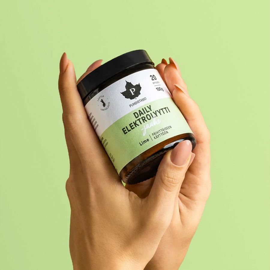 DAILY ELECTROLYTE POWDER Regenerační elektrolytový nápoj s optimalizovaným obsahem draslíku a hořčíku - příchuť limetka Pomáhá udržovat rovnováhu tekutin v těle / hydratuje buňky / pomáhá odstraňovat přebytečnou vodu / uhasí žízeň Pro každodenní použití - ráno po probuzení, kdykoliv během dne, večer před spaním, nebo po ukončení výkonu Vhodné při běžném fungování, při sportu pro optimální regeneraci, nebo při redukčních dietách Méně sodíku, více draslíku a hořčíku + mořské minerály Guerande Doplněno kokosovou vodou v prášku Antioxidační účinek - obsahuje denní dávku vitamínu C Sofistikovaná optimalizace rovnováhy tekutin v těle a regenerace 0 gramů cukrů Vynikající biodostupnost Prémiová kvalita - produkt obsahuje pouze aktivní složky Prémiová čistota - bez obsahu balastních aditiv, pojiv, plnidel a umělých sladidelDaily Electrolyte Powder je přírodní, lahodně chutnající elektrolytový nápojový prášek pro optimální regeneraci a uhašení žízně. Daily Electrolyte Powder pomáhá udržovat rovnováhu tekutin v těle, optimalizuje hydrataci buněk a naopak podporuje odstranění přebytečné vody z těla (oteklý vzhled). Vzhledem k tomu, že Daily Electrolyte Powder obsahuje méně sodíku a naopak obsahuje více draslíku ve srovnání s běžnými elektrolytovými prášky Puhdistamo, hodí se dokonale pro každodenní hydrataci. A to i mimo zvýšenou fyzickou aktivitu a silné pocení (vysoký výdej tekutin). Dávku prášku si můžete vzít kdykoliv, po ranním probuzení, během pracovního dne nebo večer po cvičení.Kromě nejdůležitějších elektrolytů obsahuje guerandskou mořskou sůl, vitamin C a kokosovou vodu v prášku. Produkt je vhodný pro optimalizaci hladiny minerálů v těle po vrcholovém sportovním výkonu, např. večer před spaním, nebo pro pravidelné denní využití pro rovnováhu tekutin v těle při rekreačním sportu, nebo wellness. Náš elektrolytický prášek je také dokonale vhodný k podpoře zvýšené potřeby elektrolytů v ketogenní stravě. (Viz. Chytré iontové nápoje – pro 100% čistý sportovní výkon).Elektrolyty a další minerály produktu pocházejí z nejkvalitnějších zdrojů a základ produktu, sodík pochází z celé nerafinované mořské soli sušené na slunci, která obsahuje nejen sodík a chlorid, ale také více než 80 dalších minerálů a stopových prvků. Kromě toho jsou zahrnuty velmi účinně vstřebávané formy draslíku i hořčíku. Vitamin C je získáván z askorbátu vápenatého šetrného k trávícímu traktu.Draslík (glukonan draselný) a hořčík (jablečnan hořečnatý) - vedle sodíku nezbytné minerály pro kvalitní hydrataci během výkonu nebo kdykoli při nadměrném pocení. Spolu se sodíkem je nezbytné přijímat i tyto minerály, zejména kvůli rovnováze v tzv. sodno-draselné pumpě.Sodík (Mořská sůl Guerande) - základ doplňku z velmi kvalitní nerafinované mořské soli Guerande obsahující další desítky stopových prvkůVitamín C (L-askorbát vápenatý) - zdroj vitamínu C šetrný k žaludku, vitamín C má vlastnosti související s oxidativním stresem.Kokosová voda v prášku - obsažené minerály doplňuje kokosová voda v prášku, která je také přirozeným zdrojem elektrolytů a stopových prvků. Využití produktů řady Electrolyte a produktů řady Daily Electrolyte Electrolyte Powder Daily Electrolyte Powder Sport - během intenzivního fyzického výkonu Rekreační sport a wellness - během výkonu Zvýšený výdej tekutin (horko, sauna, atd.) Sport - optimální regenerace po výkonu Rovnováha tekutin v těle + zadržování přebytečné vody Diety a odbourávání tuku Produkt neobsahuje laktózu, mléko a lepek.Produkt neobsahuje želatinu ani přísady živočišného původu.Vyvinuto a vyrobeno ve Finsku.Prémiová značka Puhdistamo nabízí jedinečnou řadu etických doplňků stravy, originálních adaptogenů z Laponska a výběrových superpotravin nejvyšší jakosti. Nekompromisní a vášnivý přístup k maximální možné kvalitě je doslova zakódován v DNA, tedy v základní genetické informaci celé značky! Jednotlivé produkty obsahují pouze čistou směs aktivních složek, to vše bez obsahu balastních aditiv, pojiv a plnidel. Prémiové suroviny jsou vybírány ze zdrojů, které odpovídají přirozenému výskytu daného druhu, ať se jedná o přírodní bohatství severských lesů v Laponsku a Finsku, nebo další špičkové lokality po celé zeměkouli. Celkový etický koncept značky vychází z propojení přírody a moderních vědeckých poznatků. Tento jedinečný přístup poskytuje jedinečné nutriční a synergické botanické formulace, které jsou hluboce účinné a přesně vyvážené. Balení: 100 g Dávkování: 5 g (1 odměrku) rozpusťte v 400-600 ml vody. Užívejte 1-4 x denně. Balení obsahuje 20 dávek. Upozornění: Není náhrada pestré stravy. Nepřekračujte doporučenou denní dávku. Skladujte v suchu, chladu, mimo dosah dětí. Chraňte před světlem. Aktivní látky: v 5 g (% RHP*) ve 20 g (% RHP*) Draslík 317 mg (15 %*) 1268 mg (63 %*) Hořčík 94 mg (25 %*) 375 mg (100 %*) Vitamín C 132 mg (165 %*) 528 mg (660 %*) Sodík 153 mg 612 mg *% RHP - referenční hodnota příjmu vitamínů a minerálních látek Složení: kokosová voda v prášku, glukonan draselný, regulátor kyselosti kyselina jablečná, jablečnan hořečnatý, Guérande mořská sůl, L-askorbát vápenatý (vitamín C), přírodní aroma, barvivo (extrakt ze spiruliny a světlice barvířské), sladidlo steviol-glykosidy. Prášek pro přípravu nápoje.
