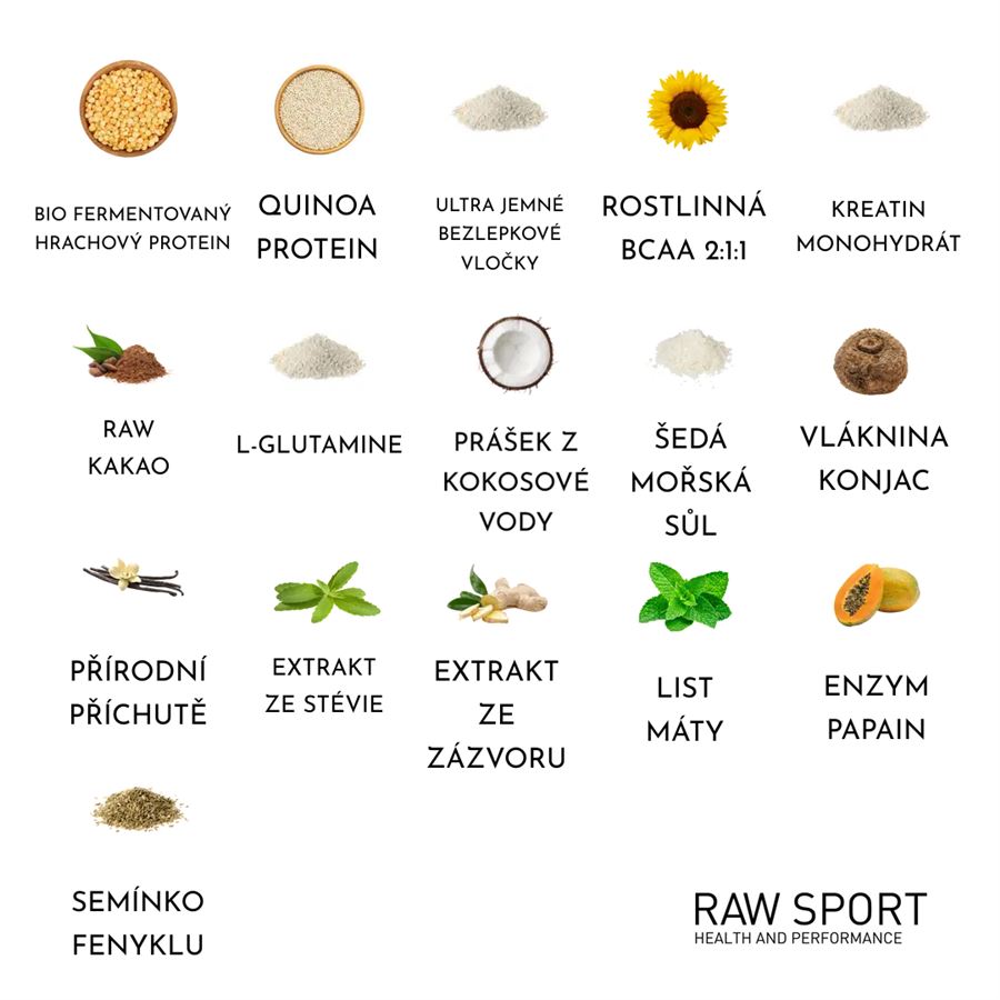 Hlavní složkou proteinu je bílkovina z fermentovaného hrachu a bílkovina z quinovy.