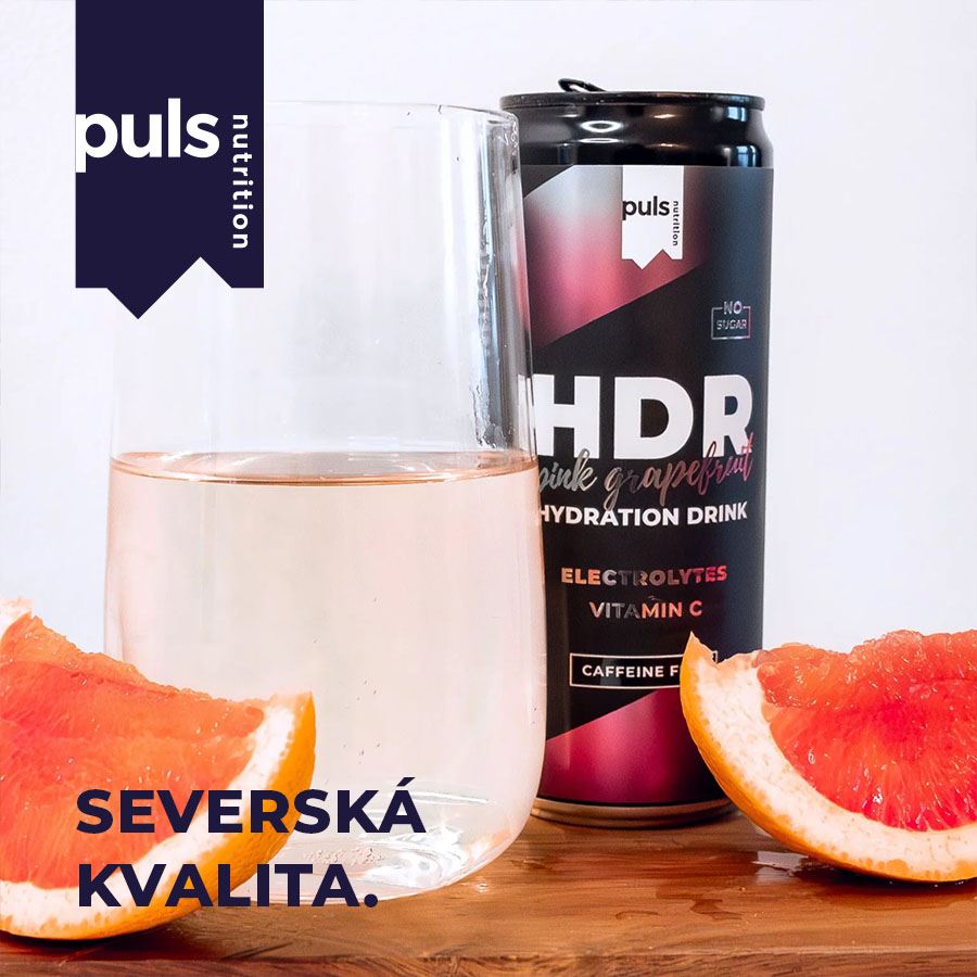 HDR ELECTROLYTES DRINKPerlivý nealkoholický nápoj se sladidlem, s elektrolyty. SEVERSKÁ KVALITA BEZ KOMPROMISU Užijte si fantastickou chuť červeného grepu a zůstaňte hydratovaní a plní energie s funkčním elektrolytovým nápojem PULS HDR. Obsahuje hořčík, vápník, draslík a vitamin C. Tento nápoj bez cukru a kofeinu osvěží a hydratuje kdykoli na cestách i během nebo po tréninku. Jemně perlivý se skvělou chutí. Žádné kompromisy z hlediska jedinečné chuti a složení. Finská značka PULS NUTRITION patří ve všech ohledech k absolutní špičce sportovní a doplňkové výživy. Severská kvalita Bez cukru Bez sacharidů Bez kofeinu Klíčové elektrolyty Vitamín C Příchuť červený grep PULS NUTRITION - FUEL FOR THE PASSIONATE ONES O značce Inspirujeme naše zákazníky, aby v každodenním životě dělali ta nejlepší rozhodnutí. PULS vznikl ve Finsku z potřeby skloubit hektický a aktivní životní styl se zdravou a výživnou stravou. V PULS věříme, že sportovní výživa a nápoje nejsou určeny jen vrcholovým sportovcům. Pokud se používají správně, mohou fyzicky i psychicky prospět každému, kdo potřebuje v běžném dni trochu povzbuzení nebo energetický přísun. Naše poslání Naším posláním je dodávat životu energii prostřednictvím sportovní výživy. Nabízíme chutné a funkční produkty navržené tak, aby podpořily a pomohly naplno rozvinout váš potenciál. Naše hodnoty Kvalita je naší hlavní prioritou. Chuť - Naše produkty musí vždy skvěle chutnat. V tomto směru neděláme žádné kompromisy. Zdraví a benefity - Všechny naše produkty jsou zdravější volbou. Ne všechny jsou však bez obsahu cukru, bezlepkové či veganské — protože nejsme striktní a jsme ochotni ke kompromisu, pokud přináší přidanou hodnotu. Dostupnost - Naším cílem je, aby byly naše produkty snadno dostupné — ať už ve vašem místním obchodě, nebo pohodlně online. Dostupná cena - Za kvalitní produkty není nutné utrácet jmění. Chceme nabízet nejlepší poměr ceny a kvality na trhu, aniž bychom dělali kompromisy v oblasti kvality či bezpečnosti. Balení: 330 ml Použití: konzumujte 1 plechovku denně. Po otevření spotřebujte do 24 hodin. Upozornění: Skladujte v suchu a chladu, mimo dosah dětí. Výživové údaje: na 100 ml na 330 ml Energetická hodnota 0 kJ/ 0 kcal 0 kJ/ 0 kcal Tuky 0 g 0 g z toho nasycené mastné kyseliny 0 g 0 g Sacharidy 0 g 0 g z toho cukry 0 g 0 g Bílkoviny 0 g 0 g Sůl 0 g 0 g Aktivní látky: na 100 ml na 330 ml Vápník 36 mg (5 %*) 120 mg (15 %*) Hořčík 42 mg (11 %*) 140 mg (37 %*) Draslík 91 mg (5 %*) 300 mg (15 %*) Vitamín C 28 mg (36 %*) 94 mg (118 %*) Složení: sycená voda, regulátor kyselosti (kyselina jablečná, citrát sodný), hořečnaté soli kyseliny citrónové (citrát hořečnatý), citrát draselný, citrát vápenatý, aroma, sladidlo sukralóza, vitamín C (kyselina L-askorbová), barvivo prášek z červené řepy.