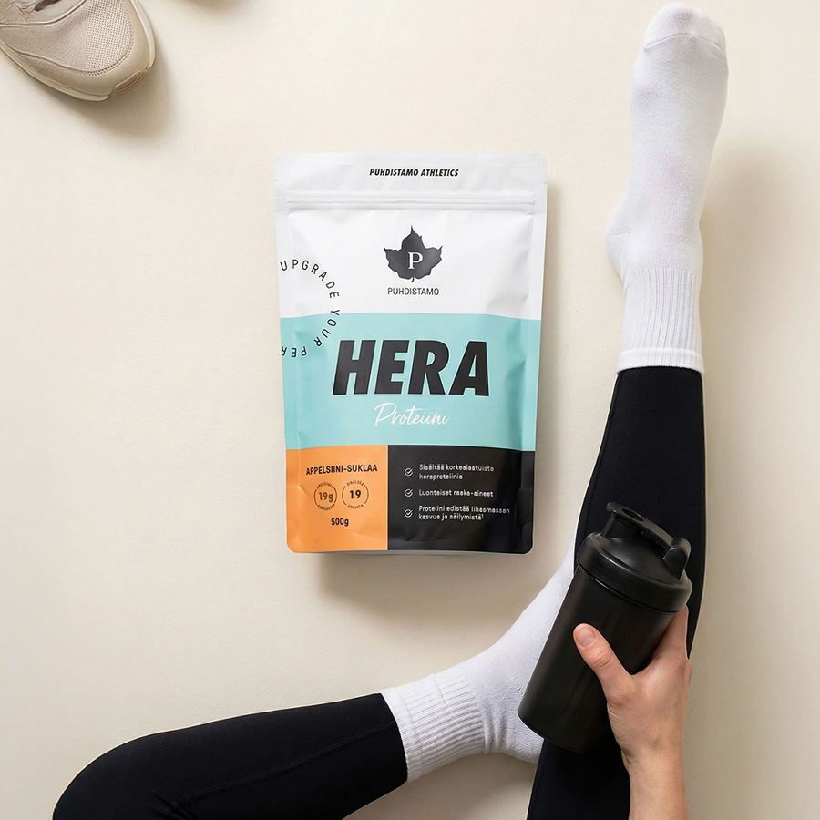 HERA je superprémiový syrovátkový protein pocházející z volných pastevních odchovů (udržitelné zemědělství). V zimě jsou tyto chovy krmeny BIO krmivem, je tak garantována absolutní čistota výsledného produktu. Syrovátkový protein HERA (=syrovátka) je zcela bez hormonů, pesticidů a zbytků antibiotik. Také neobsahuje žádná uměla sladidla (sukralózu, aspartam, acesulfam,...) nebo jiné syntetické přísady.