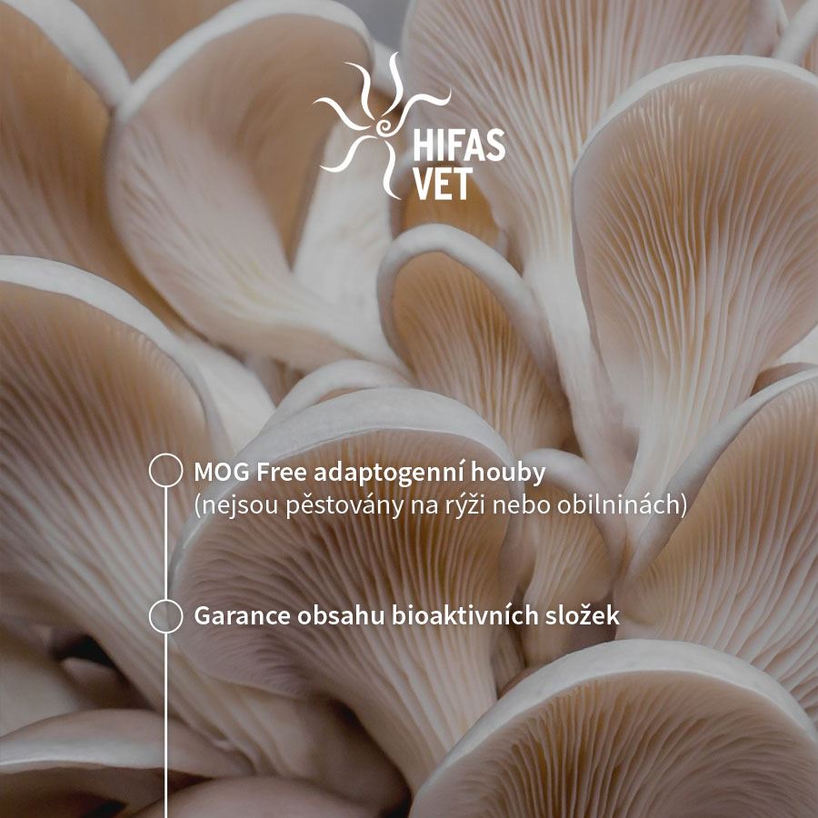HifasArthroPet Hifas Arthro Pet je doplněk výživy pro psy a kočky s obsahem bioaktivních látek z adaptogenních hub zaměřených na oblast pohybového aparátu. Je ve formě tekuté suspenze, kterou mohou zvířata bez problémů konzumovat z misky. Hodí se pro všechna plemena psů i koček jakéhokoli stáří. Adaptogenní houby pro psy a kočky / kloubní podpora / 3 cesty účinku / ve formě tekuté suspenze / balení obsahuje lahvičku a dávkovač s měrkou Mechanismus účinku 1.) Modulace obranného štítu 2.) Modulace oxidativního stresu 3.) Doplnění strukturálních složek Obsažené bioaktivní složky Hericium (extrakt Herizumib) Cordyceps (extrakt Cordyzumib) Reishi (mikronizovaný prášek z plodnice) Shiitake (mikronizovaný prášek z plodnice) Vaječná blána (zdroj kolagenu typu II, kyseliny hyaluronové, chondroitinu, glukosaminu) Hlíva ústřičná (prášek) Nativní kolagen typu II a Fosfatidyl- serin* Co je to Fosfatidylserin*? Jedná se o složku buněčných membrán, která je obzvlášť hojně zastoupena v mozku. Působí jako buněčný posel a je klíčová pro komunikaci mezi mozkovými buňkami. Výhody fosfatidylserinu pro domácí zvířata zahrnují: • Zlepšení kognitivních funkcí: Pomáhá udržovat paměť, schopnost učení a další mozkové funkce, zejména u starších zvířat. • Podpora zdraví mozku: Přispívá ke zdravé struktuře a funkci mozkových buněk. • Ochrana proti běžnému stárnutí: U starších psů může fosfatidylserin pomoci zmírnit účinky stárnutí na mozek. Čím se adaptogenní houby Hifas da Terra odlišují • MOG FREE adaptogenní houby - nejsou pěstovány na rýži nebo obilninách* • Garance obsahu bioaktivních složek • Adaptogenní houby od přímého producenta - eko farma Hifas ve Španělsku • Kontrola produkce od A po Z - od pěstování hub, zpracování až po výsledný produkt Adaptogenní houby hrají důležitou roli v modulaci oxidativního stresu a v modulaci odpovědi obranného štítu v případě problémů s pohybovým aparátem. Pomáhají chránit klouby, chrupavky a posilují vazy a šlachy. Mechanismus účinku 1.) Modulace obranného štítu Problémy s klouby mohou souviset s chybně fungujícím obranným štítem, který začne napadat vlastní tkáně (klouby,chrupavky,..). Hifas Arthro Pet obsahuje adaptogenní houby (Hericium, Cordyceps, Shiitake, Reishi), jejichž vlastnosti souvisejí s modulací obranného štítu. 2.) Modulace oxidativního stresu Problémy s pohybovým aparátem může doprovázet nadměrný oxidativní stres. Obsažené adaptogenní houby mají vlastnosti související s modulací oxidativního stresu. 3.) Doplnění strukturálních složek Problém může být dále způsoben úbytkem tkáňové hmoty kloubů, chrupavek,..., Hifas Arthro Pet proto obsahuje vaječnou blánu, která je přirozeným zdrojem kolagenu, kyseliny hyaluronovové, elastinu, chrondroitinu a glukosaminu - strukturálních složek pohybového aparátu. Arthro Pet dále obsahuje nativní kolagen typu II, nehydrolyzovaný, přirozeně se vyskytující kolagen v biologicky aktivní formě. Účinkuje prostřednictvím mechanismu mediovaného obranným štítem, tzv. orální tolerance, kdy tělo kolagen typu II rozezná jako známou látku. Zaměření Arthro Pet • Posiluje integritu a chrání chrupavku a klouby • Zlepšuje pohyblivost a ohebnost • Pro psy i kočky s vysokou mírou pohybu • Pro starší psy i kočky s problémy • Pro štěňata/koťata velkých plemen, která mezi 6-18 měsíci velmi rychle rostou • Pro zvířata s nadváhou a namáhanými klouby • Podpora před nebo po operací pro urychlení regenerace Jak používat Arthro Pet Pomocí obsaženého dávkovače stačí dát suspenzi na krmivo, do misky nebo na talířek, případně přímo zvířeti do tlamy. Garantovaný obsah bioaktivních složek (na 10 ml dávku) Beta glukany (1,3-1,6) - 1576 mg / Cordycepin - 2,8 mg / Celkový kolagen - 63,4 mg / Kolagen typ II - 3,6 mg / Elastin - 35 mg / Kyselina hyaluronová - 21 mg / Chondroitin sulfát - 1,4 mg / Glukosamin - 14 mg Hifas da Terra = 100% kvalita s garantovaným původem Arthro Pet obsahuje adaptogenní houby pěstované buď v přirozené symbióze přirozeného dřeva / peletek a nebo v bioreaktoru, kde jsou vyživované všemi potřebnými mikronutrienty. Hifas da Terra nikdy nepěstuje houby nízkonákladovou cestou na rýžovém nebo obilném substrátu, odkud nemohou načerpat potřebné nutrienty. Značka tak garantuje obsah bioaktivních látek a u svých produktů vždy uvádí jejich množství. Hifas da Terra také nenakupuje houby od jiných pěstitelů, například z Číny, jak je běžné u jiných značek, ale má svou vlastní ekofarmu v lesích severozápadního Španělska. Hifas da Terra tak má 100% kontrolu nad celým procesem produkce hub, od jejich pěstování až po konečný produkt. Obsažené složky Cordyzumib (Cordyceps sinensis) - je bohatý na přírodní bioaktivní molekuly jako jsou beta-glukany, ergosterol a provitamin D, esenciální aminokyseliny, linolová a linolenová kyselina, vitaminy skupiny B (B1, B2 a B12) a minerály jako mangan, zinek, selen, chrom a fosfor. Cordyceps je obzvláště bohatý na kordycepin, kordycepovou kyselinu a adenosin. Herizumib (Hericium erinaceus) - nový biotechnologický produkt vyvinutý společností Hifas da Terra. Tato nová funkční složka je výsledkem fermentační technologie využívající kmen DSM34087 houby Hericium erinaceus. Jde o vlastní izolovaný kmen pocházející z oblasti Pontevedra, jehož účinnost je podložena in vitro studiemi podporují jeho využití v doplňcích stravy pro zvířata. Vaječná blána - Obsahuje novou generaci funkčních složek, které se široce využívají v lidské i veterinární medicíně. Jedná se o přirozený zdroj kolagenu, kyseliny hyaluronové, elastinu, chondroitin sulfátu