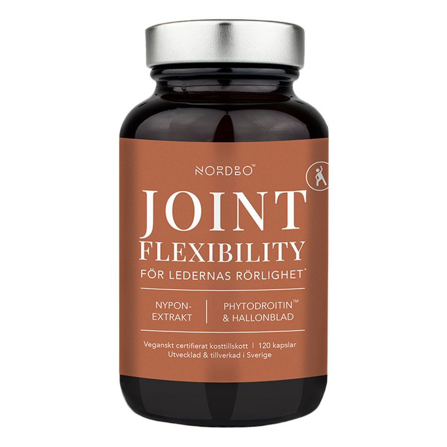 JOINT FLEXIBILITY Doplněk stravy. - PODPORA POHYBLIVOSTI KLOUBŮ- Špičková kvalita a čistota / Made in Sweden (GMO free)- PhytodroitinTM - extrakt z mořské řasy Ulva lactuca a chaluhy Fucaceae fucus vesiculosus- Veganská alternativa chondroitinu, účinek a struktura jsou velmi podobné- Extrakt z listů maliníku - zdroj polyfenolů, zejména kyseliny gallové a sanguiinu H6- Extrakt z šípku - zdroj přírodní formy vitamínu C, polyfenolů a antokyanů- Certifikát I'm Vegan organizace Djurens Rätt (Animal Rights)- Produkt neobsahuje živočišné složky, pojiva a nežádoucí balastní složky- NORDBO = kvalita a klinicky prověřené zdroje + udržitelnost a etická odpovědnost Joint Flexibility je určený pro zlepšení pohyblivosti a zmírnění ztuhlosti kloubů. Obsahuje tři unikátní extrakty zaměřené na tuto oblast - PhytodroitinTM, extrakt z maliníku a extrakt ze šípků. PhytodroitinTM je extrakt z mořské řasy Ulva lactuca a chaluhy Fucaceae fucus vesiculosus. Jde o rostlinnou alternativu chondroitinu se srovnatelnými vlastnostmi a účinky. Chondroitin je jednou ze stavebních látek chrupavek, tvrdé tkáně kolem kloubů, která pohlcuje nárazy. Chondoritin na sebe mimo jiné váže vody a zajišťuje tak elasticitu chrupavky. Obvykle se získává z hovězího, žraločího nebo kuřecího zdroje. PhytodroitinTM se skládá z fermentovaných polysacharidů - kyseliny glukuronové a N-acetylglukosaminu, a speciálních extraktů z řas bohatých na mukopolysacharidy. Univerzita Nottingham Trent porovnávala mukopolysacharidovou strukturu phytodroitinu s chondroitinem. Výsledky potvrdily, že jde z hlediska struktury o téměř identické látky. Extrakt z listů maliníku obsahuje polyfenoly, velmi silné antioxidanty. Zejména kyselinu gallovou a sanguiin H6. Extrakt je standardizovaný na obsah 0,4 sanguiinu H6. Účinek těchto látek souvisí s oxidativním stresem, který vzniká při pohybu a který oslabuje pohybový aparát. Šípky jsou přirozeně bohaté na vitamín C, fenoly, flavonoidy, kyselinu ellagovou, lykopen, vitamín E a další látky. Vlastnosti těchto složek souvisí zejména s oxidativním stresem. Rosa canina (Šípky) - pomáhá udržet zdravé a ohebné klouby / Rosa canina pomáhá zvýšit kloubní pohyblivost / Rosa canina pomáhá eliminovat slabost a posiluje tělo. Produkt je vhodný pro všechny jedince zaměřené na:- Pohyblivost kloubů Certifikace I'm VeganCertifikát I'm Vegan uděluje švédská organizace Djurens Rätt (Animal Rights), která garantuje, že produkt je 100% rostlinného původu a při jeho výrobě nebyly použity žádné živočišné složky. Certifikát se uděluje potravinám, doplňkům stravy, hygienickým produktům a kosmetice. I'm Vegan představuje jednoduchou cestu, jak si spotřebitel může být jistý, že značka nebo produkt splňuje standarty organizace Djurens Rätt.O certifikátu1. Djurens Rätt vznikla v roce 1882 a nyní je švédskou vedoucí organizací v oblasti ochrany zvířat. Jde o politicky nezávislou organizaci, která se zaměřuje na zvýšení ochrany zvířat v domácím i mezinárodním měřítku.2. Produkty s označením I'm Vegan musí být 100% rostlinné. Je u nich zakázáno testování na zvířatech a nesmí být použity žádné živočišné složky nebo živočišné deriváty.3. Značka musí pro udělení certifikátu doložit veškerou dokumentaci, aby byl 100% prověřen původ produktu.O značce NordboNORDBO je švédská značka, jejíž filozofie je založena na dvou pilířích: kvalita a klinická dokumentace + udržitelnost a etická odpovědnost. Značka spojuje severskou tradici a kvalitu, se smysluplnou inovací a čistotou použitých složek = inovativní vývoj klasických doplňků, lepšími způsoby. Skvělým příkladem je nativní rybí tuk Nordbo, který pochází z lokální skandinávské produkce a je vyroben ze 100% udržitelných zdrojů. S produkty Nordbo máte 100% jistotu, že při jejich výrobě bylo vždy myšleno na maximální možnou funkčnost, kvalitu zdrojových surovin a zároveň na ohleduplnost k životnímu prostředí. Všechny produkty Nordbo za sebou mají buď certifikáty ASC (Aqua Stewardship Council) nebo I'm Vegan. Všechny jsou navíc vyrobené podle standardů GMP (Good Manufacturing Practices). Pro papírové obaly je použitý recyklovaný papír FSC (Forest Stewardship Council).NORDBO = švédské doplňky stravy založené na dvou pilířích:1. Kvalita a klinicky prověřené zdroje2. Udržitelnost a etická odpovědnostProdukty Nordbo jsou vyrobené s maximálním možným ohledem na životní prostředí. Při jejich výrobě je dbáno na udržitelnou produkci, co nejmenší stopu CO2 a na užití recyklovatelných materiálů - produkty jsou zabalené v krabičkách z recyklovaného papíru. Nordbo se zároveň snaží užívat co nejméně plastu a různých nadbytečných reklamních předmětů. Naopak se snaží o minimalismus a střídmost. Na prvním místě je 100% kvalita produktu, ne agresivní marketing. Balení: 120 kapslí (92 g) Dávkování: 3 kapsle denně po dobu prvních 6 týdnů, poté 2 kapsle denně. Upozornění: Nepřekračujte doporučenou denní dávku. Není náhrada pestré stravy. Skladujte v chladu a suchu, mimo dosah dětí. Kojící a těhotné ženy užívejte jen po poradě s lékařem. Aktivní látky: na 2 kapsle na 3 kapsle Extrakt z šípku 1000 mg 1500 mg PhytodroitinTM 160 mg 240 mg z toho glykosaminoklykany 8,8 mg 13,2 mg Extrakt z malinových listů 134 mg 201 mg z toho polyfenoly (kyselina gallová) 13,4 mg 20,1 mg z toho sanguiin H6 536 µg 804 µg Složení: extrakt z šípku (Rosa canina), PhytodroitinTM [mořský salát (Ulva lactuca L.), chaluha bublinatá (Fucaceae fucus vesiculosus), hyaluronát sodný], extrakt z listů maliníku (Rubus idaeus L.), rýžová mouka, MCT olej (triglyceridy se středně dlouhým řetězcem; z kokos