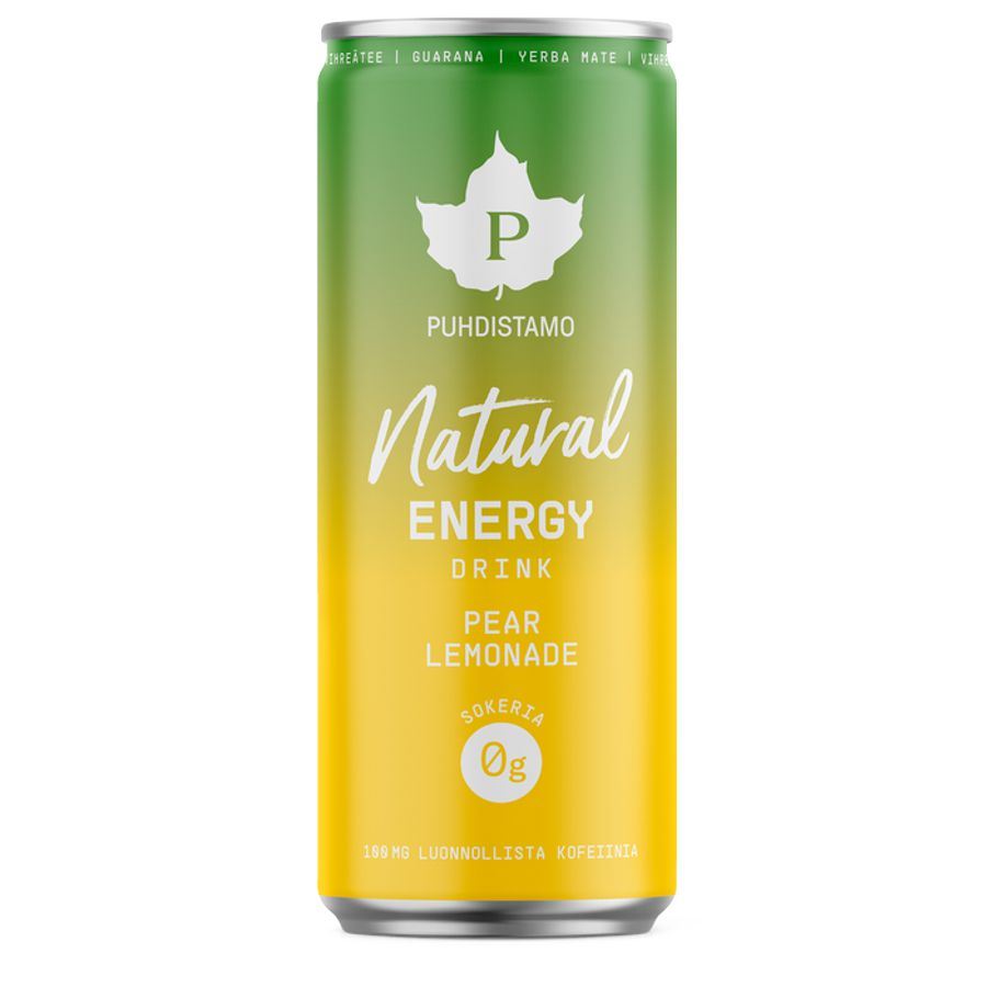 NATURAL ENERGY DRINK Energetický perlivý nealkoholický nápoj se sladidlem. S vysokým obsahem kofeinu (30 mg/ 100 ml) - Nevhodné pro děti, těhotné a kojící ženy. - Energetický nápoj s příchutí hrušky- Bez umělých sladidel, umělých aromat a konzervantů- Slazeno pouze steviol-glykosidy- Extrakt z guarany, extrakt z yerba maté, extrakt ze zeleného čaje Natural Energy Drink Puhdistamo je naprostá bomba - chutná jako osvěžující energetický nápoj s příchutí bergamotu a neobsahuje žádné syntetické složky ani cukr! Můžete si tak užívat chuť a energii bez starostí! Vyvinuto a vyrobeno ve Finsku. Prémiová značka Puhdistamo nabízí jedinečnou řadu etických doplňků stravy, originálních adaptogenů z Laponska a výběrových superpotravin nejvyšší jakosti. Nekompromisní a vášnivý přístup k maximální možné kvalitě je doslova zakódován v DNA, tedy v základní genetické informaci celé značky! Jednotlivé produkty obsahují pouze čistou směs aktivních složek, to vše bez obsahu balastních aditiv, pojiv a plnidel. Prémiové suroviny jsou vybírány ze zdrojů, které odpovídají přirozenému výskytu daného druhu, ať se jedná o přírodní bohatství severských lesů v Laponsku a Finsku, nebo další špičkové lokality po celé zeměkouli. Celkový etický koncept značky vychází z propojení přírody a moderních vědeckých poznatků. Tento jedinečný přístup poskytuje jedinečné nutriční a synergické botanické formulace, které jsou hluboce účinné a přesně vyvážené. Balení: 330 ml Použití: po otevření skladujte v lednici, spotřebujte do jednoho dne. Upozornění: Skladujte v suchu, chladu, chraňte před přímým slunečním zářením. Konzumujte max. 2 plechovky denně. Výživové údaje: ve 100 ml Energetická hodnota 3 kJ / 1 kcal Tuky 0 g z toho nasycené mastné kyseliny 0 g Sacharidy 0 g z toho cukry 0 g Bílkoviny 0 g Sůl 0 g Složení: Sycená filtrovaná voda, regulátor kyselosti kyselina jablečná, extrakt z guarany*, sladidlo steviol-glykosidy, přírodní aroma, extrakt z Yerba maté*, extrakt ze zeleného čaje*. *přirozeně obsahuje kofein (obsah 30 mg ve 100 ml produktu).