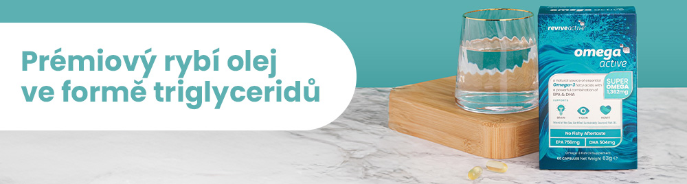 OMEGA ACTIVE Doplněk stravy s obsahem Omega 3. Omega-3 rybí olej ve formě triglyceridů / best-seller Made In Ireland. Omega Active je špičkový produkt z kategorie omega-3 rybích olejů. S obsahem 756 mg EPA a 504 mg DHA v jedné dávce (2 kapsle). Lehce polknutelné kapsle mají speciální enterický povrch, který je chrání při průchodu kyselým prostředím žaludku. Namísto se kapsle dostávají až do horní části střeva, kde se teprve rozpouští. To zlepšuje vstřebatelnost a předchází rybí chuti přetrvávající po konzumaci. Kapsle jsou na rostlinné bázi, neobsahují žádná umělá barviva. ZAMĚŘENÍ PRODUKTU Mozek Srdce Oxidativní stres EPA (756 mg) a DHA (504 mg) - klíčové omega-3 mastné kyseliny podporující funkci mouku a srdce, působí také jako silné antioxidanty. Vitamín E (2,1 mg) - antioxidant. * Biologicky aktivní složky v 1 dávce FRIENDS OF THE SEA® Omega Active je vhodný pro všechny starší 12 let, je také velmi vhodný pro těhotné a kojící maminky, obsažené omega-3 mají vlastnosti spojené s fungováním mozku a srdce. Omega Active rybí olej pochází z udržitelného zdroje certifikovaného organizací Friends of the Sea®. Tato prestižní mezinárodní certifikace je udělována pouze produktům respektujícím křehkou rovnováhu mořského ekosystému a zároveň dodržujícím etické obchodní standardy. JAK UŽÍVAT OMEGA ACTIVE 2 kapsle denně s vodou. kapsle polykejte nežvýkejte. Povolená zdravotní tvrzení podle Nařízení Evropské komise č. 432/2012: DHA přispívá k udržení normální činnosti mozku / DHA přispívá k udržení normálního stavu zraku / DHA přispívá k udržení normální hladiny triglyceridů v krvi / DHA a EPA přispívají k udržení normálního krevního tlaku / DHA a EPA přispívají k udržení normální hladiny triglyceridů v krvi / EPA a DHA přispívají k normální činnosti srdce. CERTIFIKÁTY A UDRŽITELNOST Vlastní výroba v našich dvou nejmodernějších výrobnách v Irsku. Sáčky a stickpacky jsou hermeticky uzavřeny, aby poskytovaly bariéru proti světlu, vlhkosti a jiné vnější kontaminaci a udržovaly integritu a účinnost aktivních složek. Výrobní závody Revive Active jsou certifikovány podle standardu BRCGS Global Food Safety V9, Grade AA, s počáteční certifikací získanou v květnu 2023. BRCGS Global Food Safety Standard poskytuje rámec pro řízení bezpečnosti produktů, integritu, zákonnost, kvalitu a provozní kontroly pro tato kritéria v potravinářském průmyslu. Revive Active se snaží fungovat ekologicky, s vědomím splnění standardů ESG s prvotní identifikací základní úrovně uhlíku, identifikovanými emisemi uhlíku v rozsahu 1 a rozsahu 2 a hodnocení dopadu BCorp B v procesu. Cílem je dosáhnout členství v BCorp. O ZNAČCE REVIVE ACTIVE Revive Active je v současné době nejsilnější značkou vitamínových a potravinových doplňků v Irsku. Vznikla v roce 2011, její zakladatel a v současné době výkonný ředitel Daithi O'Connor byl motivován cílem poskytnout lidem spektrum vědecky podložených suplementů, které skutečně fungují. Vybudoval kolem sebe tým expertů z pole vědy, výživy, vývoje a výzkumu. Revive Active se postupně rozrostla a nyní exportuje do 48 zemí světa. Výzkumný tým Revive Active spolupracuje s lídry v oblasti zdraví a výživy jako je například Kerry Group, pro výsledky v podobě inovativních produktů s opravdovými účinky. Jsou připravovány a baleny ve výrobním zařízení v Mullingaru, kraji Westmeath v Irsku. Kontrola našeho dodavatelského řetězce znamená, že vždy dodržujeme přední průmyslové standardy. Naše doplňky jsou navrženy tak, aby kombinovaly aktivní složky, které mají největší účinek pro každou věkovou skupinu v její konkrétní životní fázi. Prostřednictvím doplňkové výživy tak můžete s jistotou čelit výzvám, ať už ve škole, v práci nebo při hře. Upřímně rozumíme výzvám, kterým naši zákazníci čelí, staráme se o ně a pomáháme jim změnit to, jak se cítí a jak se zapojují do světa. Etika - důvěra a udržitelnost vedou naši neúnavnou snahu o co nejlepší produkty pro naše zákazníky.. Balení: 60 kapslí (63 g) Dávkování: 2 kapsle denně, zapít sklenicí vody. Užívejte před jídlem nebo s jídlem s minimálním odstupem 30 minut od užití horkého nápoje. Upozornění: Není náhrada pestré stravy. Nepřekračujte doporučenou denní dávku. Skladujte v suchu a chladu, mimo dosah dětí. Pokud užíváte pravidelně léky, konzultujte užívání s lékařem. Určeno pro osoby nad 15 let. Aktivní látky: na 2 kapsle (% RHP*) Omega 3 1362 mg z toho EPA 756 mg z toho DHA 504 mg Vitamín E 2,1 mg (17,5 %*) *RHP–referenční hodnota příjmu vitamínů a minerálních látek. Složení: omega-3 rybí olej, vitamín E (D-alfa–tokoferyl acetát), obal kapsle (rostlinný glycerin, zahušťovadla, voda, modifikovaný škrob, želírující látka guma gellan, citronan sodný).