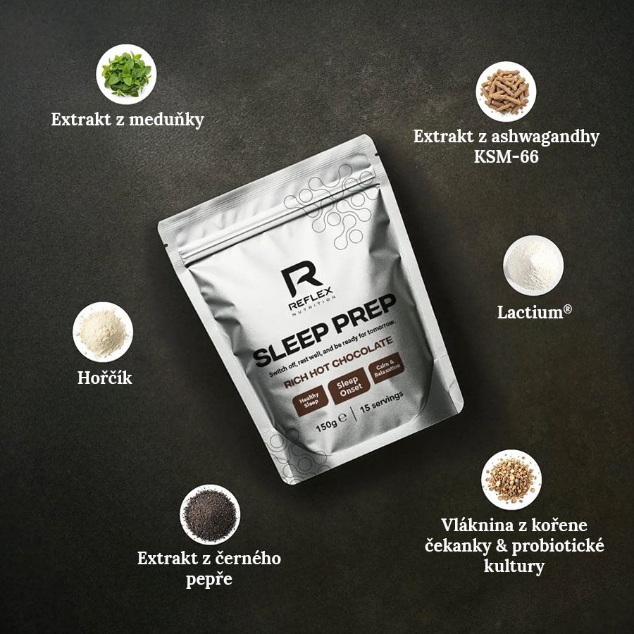 SLEEP PREPDoplněk stravy se sladidlem.Bohatý proteinový nápoj z horké čokolády, který podporuje usínání a pomáhá při napětí, podrážděnosti a neklidu před spaním. Základem je čokoládový nápoj, doplněný extraktem z ashwagandhy, speciálním hydrolyzátem mléčného proteinu Lactium®, hořčíkem, extraktem z meduňky, extraktem ze skořice a probiotiky.Sleep Prep je navržen tak, aby podpořil usínání a pomohl udržovat kvalitní spánek. Každá dávka nabízí bohatý, plně ochucený nápoj z horké čokolády s extraktem z meduňky, ashwagandhou a dalšími aktivními látkami, které přispívají k optimální relaxaci, podporují zklidnění a pomáhají snižovat neklid a podrážděnost. Nápoj je navržen tak, aby působil jemně a konzistentně – bez pocitu otupělosti následující den.Když jste tvrdě trénovali, pracovali dlouho do noci nebo nesli tíhu celého dne, váš organismus se ne vždy dokáže na povel vypnout. Stresové hormony zůstávají zvýšené, myšlenky běží dál a pocit neklidu ztěžuje udržení kvalitního spánku. Právě zde přichází na řadu Sleep Prep.Extrakt z meduňky (Melissa officinalis L.) podporuje usínání a pomáhá snižovat neklid a podrážděnost – umožňuje tak tělu i mysli přirozeně se zklidnit. Ashwagandha navíc přispívá k optimální relaxaci a emoční rovnováze. Společně podporují klidný odpočinek a pomáhají udržovat zdravý spánek – abyste se probudili svěží, regenerovaní a připraveni podávat výkon.Sleep Prep je navržen pro každodenní večerní užívání a pomáhá začlenit kvalitní spánek do vaší rutiny – smíchejte jednu 10g odměrku se 100 ml horké vody a vypijte přibližně 1 hodinu před spaním.Obsažené složky v denní dávce.- Hořčík - nezbytný elektrolyt, nervový systém, spánek- Extrakt z ashwagandhy KSM-66 - adaptogen, nervový systém- Lactium® - spánek, nervový systém- Extrakt z meduňky - nervový systém- Probiotika Lactospore® Bacillus Coagulans, Bifidobacterium bifidum, Lactobacillus Acidophilus, Lactobasillus Rhamnosus Lactium® = PEPTID ŠTĚSTÍ A BLAŽENOSTI Lactium® obsahuje bioaktivní peptid alfa-kasozepin izolovaný z micelárního kaseinu. Tento jedinečný peptid byl izolován a stabilizován po 12letém výzkumu v Laboratořích Ingredia ve spolupráci s Univerzitou Lorraine ve Francii. A jaká byla cesta k jejímu objevení? Enzymy přítomné v trávícím traktu miminek spouští tvorbu tohoto bioaktivního peptidu, který pomáhá navodit stav blaženosti a štěstí. To bohužel neplatí pro dospělé - náš zažívací systém tento bioaktivní peptid už bohužel vyrobit neumí. Po mnoha letech práce Laboratoře Ingredia vyvinuly inovativní proces kopírující mechanismus dětského trávícího systému. Byl použit enzym trypsin pro izolování bioaktivního enzymu - alfa-casozepinu z kaseinu, vyráběného pod ochrannou známkou Lactium®.Vlastnosti Lactium® souvisí s optimálním přenosem nervových vzruchů a s přirozeným zvýšením aktivity GABA (kyselina gama aminomáselná), neurotransmiteru, který inhibuje symptomy úzkosti a navozuje pocit relaxace. Lactium® lze doporučit při jakékoli stresující situaci, při velké zátěži, při nekvalitním spánku, poklesu koncentrace, poklesu nálady, při odvykání kouření, přejídání apod. Lactium® působí efektivně a přirozeně. Nezpůsobuje žádné vedlejší účinky: bez závislosti a sedativních účinků.KSM-66® Ashwaganda = ADAPTOGEN SÍLY A VITALITYAshwaganda KSM-66 - klinickými studiemi prověřený extrakt z Ashwagandy, adaptogenu z Ájurvédy s vlastnostmi souvisejícími se zvládáním stresu a zátěže. Ashwaganda KSM-66 je značkový, plnospektrální extrakt s nejvyšší koncentrací ze všech hlavních kořenových extraktů dostupných na dnešním trhu. Vyrábí se pomocí unikátního patentovaného extrakčního procesu, založeného na principech „Green Chemistry“, bez použití alkoholu nebo jiného chemického rozpouštědla. Balení: 150 g Dávkování: Smíchejte jednu 10g odměrku se 100 ml horké vody, zamíchejte a vypijte 1 hodinu před spaním. Balení obsahuje 15 dávek. Upozornění: Rozmanitá a vyvážená strava a zdravý životní styl jsou duležité. Doplněk stravy by neměl být používán jako náhrada pestré stravy. Nepřekračujte doporučenou denní dávku 10 g. Nevhodné pro děti. Poraďte se s lékařem před použitím, pokud jste těhotná, kojíte nebo užíváte léky. Uchovávejte mimo dosah malých dětí. Uchovávejte na chladném, suchém místě, mimo přímé sluneční světlo. Hořčík přispívá k normální činnosti nervového systému a normální psychické funkci. Meduňka podporuje klid a pomáhá udržovat zdravý spánek. Meduňka i kořen ashwagandhy přispívají k optimální relaxaci a podporují usínání. Aktivní látky: na 10 g (jedna dávka) (% RHP*) Hořčík 180 mg (48 % RHP*) KSM-66® - extrakt z kořene ashwagandhy 300 mg Lactium® hydrolyzát mléčné bílkoviny 300 mg Extrakt z listu meduňky 300 mg standardizovaný na 6 % kyseliny rozmarýnové 18 mg BioPerine® extrakt z černého pepře 3 mg Vláknina z kořene čekanky 1 g LactoSpore® (Bacillus Coagulans) 105,000,000 KTJ** Bifidobactirium Bifidum 125,000,000 KTJ** Lactobacillus Acidophilus 125,000,000 KTJ** Lactobacillus Rhamnosus 125,000,000 KTJ** *Referenční hodnota příjmu vitamínu a minerálních látek. **Kolonie tvorící jednotky. Složení: sušené podmáslí (alergen mléko), micelární kasein (alergen mléko), isomaltulóza†, kakaový prášek, hořecnaté soli kyseliny citrónové, vláknina z kořene čekanky, aromata, extrakt z listu meduňky (Melissa officinalis L., maltodextrin), hydrolyzát mléčných bílkovin (Lactium®; alergen mléko), extrakt z kořene ashwagandhy KSM-66® (Withania somnifera) (alergen mléko), mořská sůl, extrakt z