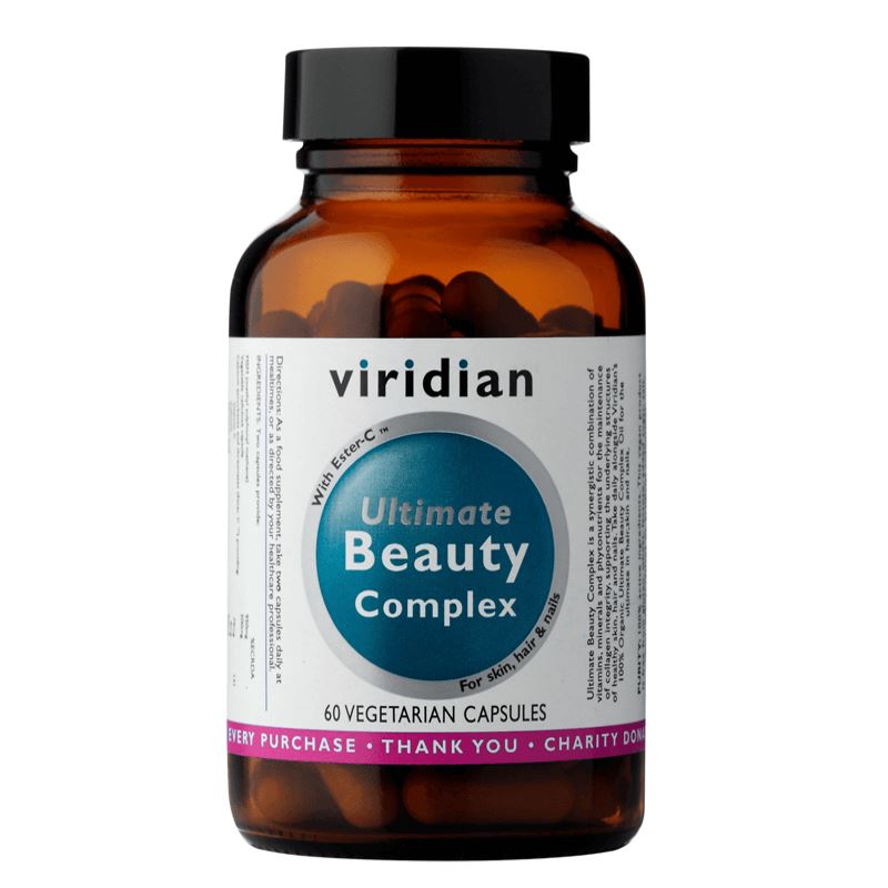Hair, Skin & Nails Ultimate Beauty ComplexDoplněk stravy Kombinace vitamínů, minerálů a fytoživin rostlinného původu pro podporu integrity kolagenu, podporu kůže, vlasů a nehtů. Ideální pro denní kombinování s Organic Beauty Complex Oil. Obsažené látky: MSM (methylsulfonylmethan) 950 mg - přirozeně se vyskytující forma organické síry, kterou lze najít ve všech živých organismech, v malých koncentracích je v lidských tělesných tekutinách a tkáních. MSM se vyskytuje v běžných potravinách jako je maso, mléko, ovoce, zelenina, atd., avšak při průmyslové úpravě se tato složka snadno ztrácí. Vitamín C (askorbát hořečnatý, askorbát zinečnatý) 180 mg (225 %*) - nekyselá, k zažívání šetrná forma vitamínu C. Vlastnosti vitamínu C souvisí s produkcí kolagenu. Zinek (askorbát zinečnatý) 15 mg (150 %*) - zinek se nachází v každé buňce těla a je stavební částí pro více než 200 enzymů. Vlastnosti zinku souvisí s uvolňováním zásob vitamínu A z jater, vitamín A má vlastnosti související s výskytem akné. Hořčík (askorbát hořečnatý) 17 mg (4,5 %*) - Vlastnosti hořčíku souvisí s enzymatickými reakcemi a proteinovou syntézou. Beta karoten (Dunaliella Salina Algae) 5 mg (odpovídá 833 μg vitamínu A) - karotenoidy jsou nejrozšířenější skupinou přirozeně se vyskytujících pigmentů, beta karoteny jsou prekurzory vitamínu A, vitamínu důležitého pro stav pokožky. Železo (Bisglycinát železnatý) 10 mg (71,4 %*) - šetrná forma železa, která nezpůsobuje zácpu, vlastnosti železa souvisí s hustotou vlasů. Borová kůra extrakt (Pinus Sylvestris) (95 % OPC) 25 mg - některým mikronutrientům lze říkat nutriční kosmetika, patří mezi ně i extrakt z borové kůry, bohatý zdroj antioxidantů, který chrání kolagenové struktury. Hroznová semínka extrakt (95 % OPC) 25 mg - výborný zdroj OPC - komplexu oligomerních proantokyanidinů, silnými antioxidanty, jejichž vlastnosti souvisejí s kapilárami, miniaturními cévami v kůži. Antioxidační efekt je 50x silnější než u vitamínu C. Selen (L-selenomethionin) 100 μg (181 %*) - důležitý stopový minerál, který tělo potřebuje pro detoxikaci od těžkých kovů. Přeslička extrakt 4:1 (Equisetum Arvense) 15 mg poskytující oxid křemičitý 300 μg - oxid křemičitý obsažený v extraktu z přesličky je potřebný pro funkci pojivových tkání. Měď (citrát měďnatý) 1 mg (100 %*) - měď je stavební blok kolagenu a elastinu. Biotin 500 μg (1000 %*) - vlastnosti biotinu souvisí s kvalitou vlasů. Etické doplňky stravy s přírodním srdcem Produkty značky Viridian Nutrition obsahují pouze čistou směs bioaktivních složek = 100 % aktivních látek a 0 % balastních aditiv. Výrobce garantuje špičkovou kvalitu a čistotu svých produktů důslednou kontrolou celého výrobního procesu. A to od semínka až po finální produkt - spolupracuje s lokálními producenty a pěstiteli zaměřenými na nejvyšší kvalitu. Všechny produkty jsou sestaveny na základě odborných, recenzovaných studií a na základě receptur špičkových výživových specialistů. Upřednostňovány jsou takové složky, které jsou prokazatelně účinné při správném dávkování. Z etických důvodů nepoužívá značka Viridian Nutrition ve svých produktech žádný palmový tuk a žádná z použitých složek nebyla testována na zvířatech. Všechny obaly produktů jsou maximální možné míře ekologické a 100% recyklovatelné. Více než 25 let tradice a Královská pečeť kvality Značka Viridian Nutrition je držitelem prestižní Královské pečeti kvality. The King's Awards for Enterprise, dříve známá jako The Queen's Awards for Enterprise, existuje už 57 let a je nejprestižnějším britským oceněním a pečetí pro nejlepší společnosti v oboru garantující maximální možné standardy. Ocenění je stvrzením cíle, který si rodinná firma Viridian vytyčila v roce 1999, kdy vznikla - nabízet nejlepší možné, efektivní, etické a čisté doplňky stravy. V současné době jich ve svém portfoliu má již více než 220, přičemž má spokojené zákazníky od Islandu až po Jižní Afriku. Laskavý ke svému tělu, šetrný k celému světu Viridian Nutrition je nezávislá rodinná značka. Věříme, že nosné hodnoty na kterých stojí naše fungování jsou stejně důležité jako složky, které tvoří naše doplňky výživy. Takže pokud říkáme „bez balastu“, máme na mysli také nezávislost a seriózní přístup k zákazníkovi. To znamená žádné tlaky investorů, žádné zkratky, žádné komerční výstřelky, žádné testování na zvířatech a absolutně žádné kompromisy pro naše zdraví a zdraví naší planety. 100 % aktivních složek Podpora lokálních producentů Netestováno na zvířatech Produkty Viridian Nutrition obsahují 100 % čistou směs aktivních složek, to vše bez obsahu balastních aditiv, pojiv a plnidel. Používáme pouze takové ingredience, které jsou nejen maximálně účinné a využitelné, ale také přirozené pro lidské tělo, životní prostředí a celou naši planetu. Jednou z klíčových a nosných zásad Viridian Nutrition je podpora místních producentů, s nimiž má velmi korektní, dlouhodobé a férové vztahy. Viridian Nutrition tak garantuje kvalitu svých doplňků, protože má přehled o celém výrobním procesu - od semínka až po finální produkt. Viridian Nutrition spolupracuje s dodavateli, kteří splňují přísná kritéria a používají etické přísady, které nejsou testovány na zvířatech. Používáme suroviny, které jsou založeny na recenzovaných vědeckých studiích a pochází z nejlepších dostupných bioklimatických podmínek pro optimální účinek. Bez GMO Bez ozařovaných složek Bez balastních aditiv Geneticky modifikované organizmy a p