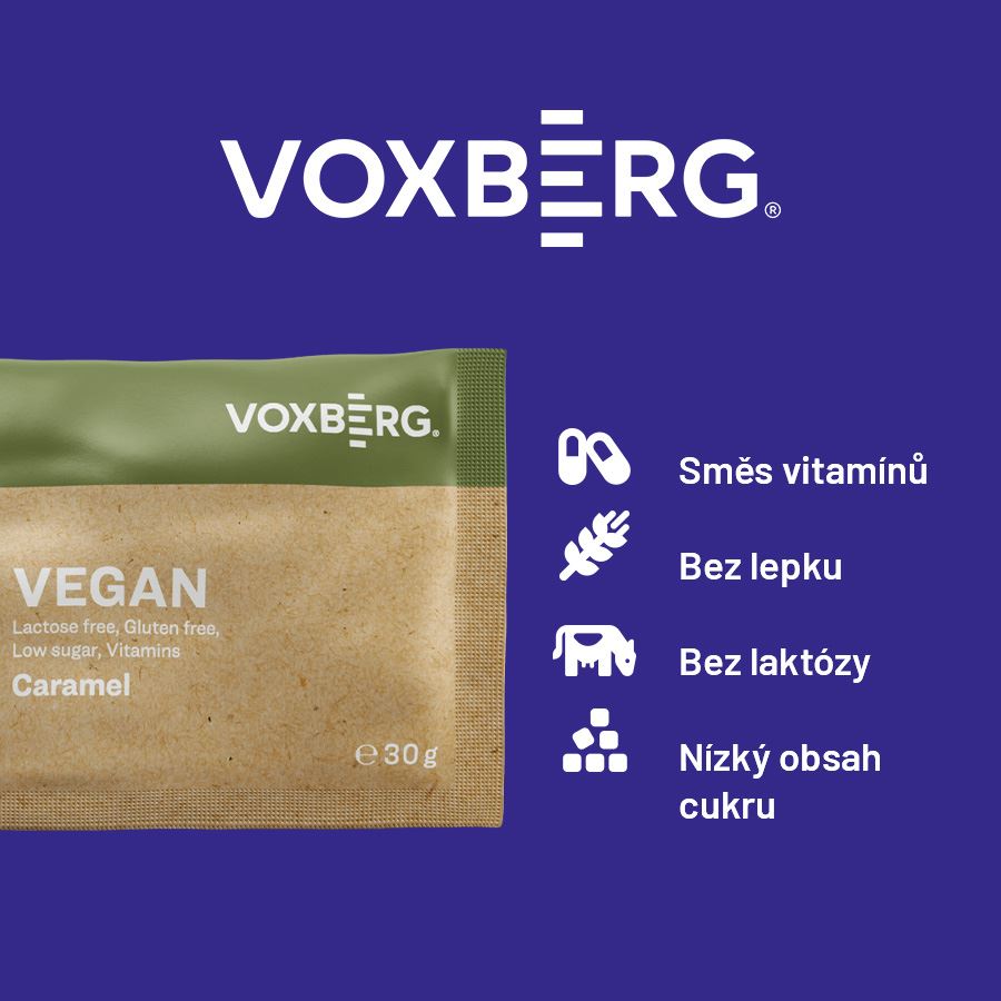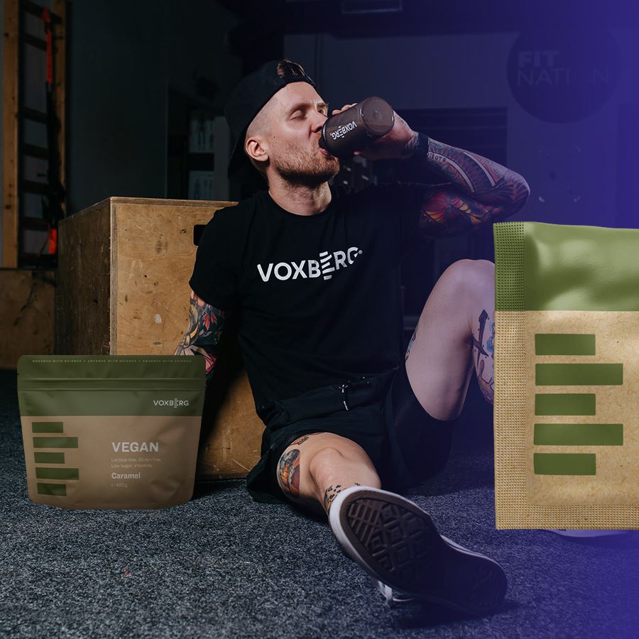 VEGAN PROTEIN Doplněk stravy, se sladidlem. Hrachový (44 %) a fazolový proteinový izolát (35 %) s přidanými vitamíny C, E, B1, B2, B3, B5, B6, B12, kyselinou listovou a biotinem. Kombinace udržitelně vyrobených rostlinných proteinů, které dokážou plnohodnotně zásobovat vaše tělo. Náš veganský protein jsme vytvořili vhodnou kombinací proteinového izolátu z hrachu a fazolí. Doplnili jsme ho komplexem vitaminů, zejména vitaminem B12, kterého má tělo při veganské stravě často nedostatek. Vegan Protein v bodech: - Komplexní aminokyselinový profil - kombinace hrachového a fazolového izolátu poskytuje komplexní aminokyselinový profil potřebný pro růst a regeneraci svalů- Přidané vitamíny C, E, B1, B2, B3, B5, B6, B12, kyseliná listová a biotin, složky, kterých při veganském stravování bývá nedostatek- Certifikace V-Label - mezinárodní certifikát pro veganské a vegetariánské produkty a služby garantující obsah čistě rostlinných složek- Chutná skvěle - na chuti našich výrobků nám opravdu záleží.- Už žádné hrudky, nikdy - Při vývoji proteinu jsme dbali na to, aby byl co nejlépe rozpustný, takže v koktejlu nenajdete hrudky bílkovin.- Nízký obsah cukru - jedna 30 g porce Vegan Proteinu obsahuje méně než 0,5 g cukru, takže je vhodný i pro nízkosacharidovou dietu- Bez laktózy- Bez lepku Proč Voxberg? - Prémiová slovenská značka- Přímý výrobce - vlastní vývoj a výzkum- Reschers Food Innovations - spolupráce s prestižními institucemi- Nejnovější vědecké poznatky v praxi- IFS certifikace a autorizace- Kontrola celého výrobního procesu- Využití surovin s nejvyšším ratingem Balení: 480 g Dávkování: Smíchejte 30 g (1 odměrka) s 200-250 ml studené vody, protřepejte po dobu 15-20 sekund a vypijte. Dávkujte po cvičení. 30 g odpovídá jedné dávce. Balení obsahuje 1 dávku. Upozornění: Skladujte v chladu a suchu, mimo dosah dětí a přímého slunečního záření. Může obsahovat stopy lepku, mléka, vajec, sóji, sezamu, arašídů a skořápkových plodů. Užívejte maximálně 3 dávky denně. Nepřekračujte doporučenou denní dávku. Není náhrada pestré stravy. Nevhodné pro děti, těhotné a kojící ženy. Nevhodné pro fenylketonuriky.. Výživové údaje: ve 100 g ve 30 g* (% RHP)** Energetická hodnota 1675 kJ/ 397 kcal 511 kJ/ 121 kcal Tuky 7 g 2,1 g z toho nasycené mastné kyseliny 1,0 g 0,3 g Sacharidy 9,9 g 3,0 g z toho cukry 1,7 g 0,5 g Vláknina 3 g 1 g Bílkoviny 72 g 22 g Sůl 1,2 g 0,4 g Přidané vitamíny: ve 100 g (% RHP)** ve 30 g* (% RHP)** Vitamín E 20 mg (167%) 6 mg (50%) Vitamin C 120 mg (150%) 36 mg (45%) Vitamin B1 2,8 mg (255%) 0,84 mg (76%) Vitamin B2 3,2 mg(299%) 0,96 mg (69%) Niacin 36 mg (225%) 10,8 mg (68%) Vitamin B6 4 mg (286%) 1,2 mg (86%) Kyselina listová 400 μg (200%) 120 μg (60%) Vitamin B12 2 μg (80%) 0,6 μg (24%) Biotin 300 μg (600%) 90 μg (180%) Kyselina pantothenová 12 mg (200%) 3,6 mg (60%) Obsah esenciálních aminokyselin ve 100 g ve 30 g* L-lysin 4932 mg 1480 mg L-methionin + cystin 1298 mg 389 g L-threonin 2539 mg 762 mg L-tryptofan 641 mg 192 mg L-isoleucin 3221 mg 966 mg L-leucin 5828 mg 1748 mg L-valin 3536 mg 1061 mg L-histidin 1768 mg 530 mg L-arginin 4039 mg 1212 mg L-fenylalanin 3723 mg 1117 mg *30 g - odpovídá jednomu balení**% RHP - referenční hodnota příjmu vitamínů a minerálních látek Složení: hrachový proteinový izolát 47 %, bobový proteinový izolát 35 %, rýžový prášek (sušený rýžový sirup, rýžový škrob, rýžová mouka), kakaový prášek se sníženým obsahem tuku, přírodní aroma, inaktivní kvasnice, vitaminový premix [vitamín C (kyselina L-askorbová), vitamín E (D-alfa-tokoferyl acetát), niacin (nikotinamid), kyselina patothenová (D-pantothenát vápenatý), vitamín B6 (pyridoxin-hydrochlorid), vitamín B2 (riboflavin), vitamín B1 (thiamin momonitrát), kyselina listová (kyselina pteroylmonoglutamová), biotin (D-biotin), vitamín B12 (kyano-kobalamin)], sladidlo sukralóza, zahušťovadlo celulózová guma.