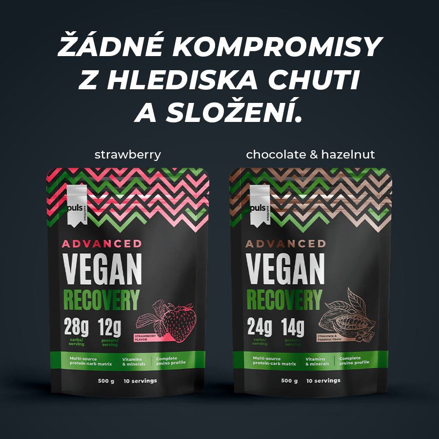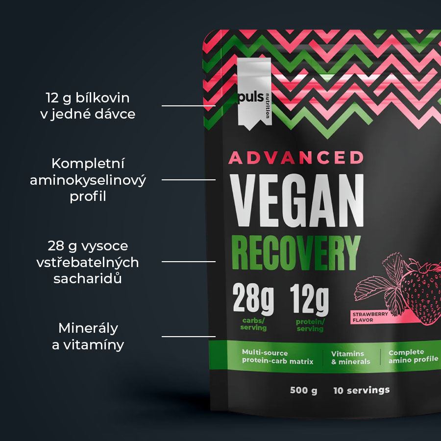 VEGAN RECOVERYDoplněk stravy se sladidly. SEVERSKÁ KVALITA BEZ KOMPROMISU 100% rostlinný regenerační drink. Díky vysoké stravitelnosti je PULS Advanced Recovery skvělou alternativou k regeneračním nápojům na bázi mléčných proteinů. Vysoce kvalitní kombinace izolátu rýžového a izolátu hrachového proteinu poskytuje kompletní spektrum aminokyselin, zatímco vícesložková směs chytrých sacharidů (isomaltulóza Palatinose™) a maltodextrinu dodává rychlou a stabilní energii. Díky přidaným vitamínům a minerálům je tento produkt navržen tak, aby podpořil regeneraci a pomohl maximalizovat tréninkové výsledky. Žádné kompromisy z hlediska jedinečné chuti a složení. Finská značka PULS NUTRITION patří ve všech ohledech k absolutní špičce sportovní a doplňkové výživy. 12 g bílkovin v jedné dávce (izolát rýžového proteinu, izolát hrachového proteinu) 28 g vysoce vstřebatelných sacharidů (Maltodextrin, Palatinose™ isomaltulóza) Kompletní aminokyselinový profil Vláknina (inulin z čekanky) Výborná chuť a jemná textura Příchuť jahoda Minerály Draslík (Citrát draselný) - 300 mg / dávka Sodík (Chlorid sodný) - 138 mg / dávka Hořčík (Citrát hořečnatý) - 100 mg / dávka Vápník (Calci-K® – fosforečnan-citrát vápenato-draselný) - 151 mg / dávka Měď (Síran měďnatý) - 187 μg / dávka Zinek (Oxid zinečnatý) - 1,9 mg / dávka Vitamíny Vitamín C (kyselina L-askorbová) - 15 mg / dávka Vitamín B3 (nikotinamid) - 3 mg / dávka Vitamín E (DL-alfa-tokoferyl acetát) - 1,8 mg / dávka Vitamín D (Cholekalciferol) - 5,6 μg / dávka Vitamín B1 (thiamin hydrochlorid) - 0,18 mg / dávka Vitamín B2 (Riboflavin) - 0,23 mg / dávka Vitamín B5 (Pantothenát vápenatý) - 1,03 mg / dávka Vitamín B6 (Pyridoxin hydrochlorid) - 0, 23 mg / dávka Kyselina listová (Kyselina pteroylmonoglutamová) - 38 μg / dávka L-karnitin L-tartrát - 2,1 mg / dávka L-arginin - 2,4 mg / dávka Alfa ketoglutarát - 1 mg / dávka Kyselina alfa-lipoová - 0,2 mg / dávka PULS NUTRITION - FUEL FOR THE PASSIONATE ONES O značce Inspirujeme naše zákazníky, aby v každodenním životě dělali ta nejlepší rozhodnutí. PULS vznikl ve Finsku z potřeby skloubit hektický a aktivní životní styl se zdravou a výživnou stravou. V PULS věříme, že sportovní výživa a nápoje nejsou určeny jen vrcholovým sportovcům. Pokud se používají správně, mohou fyzicky i psychicky prospět každému, kdo potřebuje v běžném dni trochu povzbuzení nebo energetický přísun. Naše poslání Naším posláním je dodávat životu energii prostřednictvím sportovní výživy. Nabízíme chutné a funkční produkty navržené tak, aby podpořily a pomohly naplno rozvinout váš potenciál. Naše hodnoty Kvalita je naší hlavní prioritou. Chuť - Naše produkty musí vždy skvěle chutnat. V tomto směru neděláme žádné kompromisy. Zdraví a benefity - Všechny naše produkty jsou zdravější volbou. Ne všechny jsou však bez obsahu cukru, bezlepkové či veganské — protože nejsme striktní a jsme ochotni ke kompromisu, pokud přináší přidanou hodnotu. Dostupnost - Naším cílem je, aby byly naše produkty snadno dostupné — ať už ve vašem místním obchodě, nebo pohodlně online. Dostupná cena - Za kvalitní produkty není nutné utrácet jmění. Chceme nabízet nejlepší poměr ceny a kvality na trhu, aniž bychom dělali kompromisy v oblasti kvality či bezpečnosti. Balení: 500 g Dávkování: Smíchejte 50 g (1 odměrka) s 250 ml studené vody. Berte 1 dávku denně po tréninku nebo mezi jídly. Upozornění: Skladujte v chladu a suchu, mimo dosah dětí a přímého slunce. Konzumujte maximálně 1 dávku denně. Nepřekračujte doporučenou denní dávku. Není náhrada pestré stravy. Může obsahovat stopy mléka, sóji, vajec a skořápkových plodů. Pokud jste těhotná nebo kojící žena nebo užíváte léky na předpis, konzultujte užívání s lékařem. Výživové údaje: na 100 g na 50 g Energetická hodnota 1449 kJ/ 342 kcal 725 kJ/ 171 kcal Tuky 1,4 g 0,7 g z toho nasycené mastné kyseliny 0,4 g 0,2 g Sacharidy 55 g 28 g z toho cukry 20 g 10 g Bílkoviny 24 g 12 g Sůl 1,4 g 0,7 g Aktivní látky: na 50 g (% RHP*) Vitamín B1 0,18 mg (16 %*) Vitamín B2 0,23 mg (16 %*) Vitamín B3 3 mg (18 %*) Vitamín B5 1,03 mg (17 %*) Vitamín B6 0,23 mg (16 %*) Kyselina listová 38 μg (19 %*) Vitamín C 15 mg (18 %*) Vitamín D 5,6 μg (112 %*) Vitamín E 1,8 mg (15 %*) Sodík 138 mg Hořčík 100 mg (26 %*) Vápník 151 mg (18 %*) Draslík 300 mg (15 %*) Zinek 1,9 mg (19 %*) Měď 187 μg (18 %*) L-arginin 2,4 mg Alfa-ketoglutarát vápenatý 1 mg L-lysin 3,6 mg L-karnitin 2,1 mg L-methionin 0,1 mg Kyslina alfa-lipoová 0,2 mg *% RHP—referenční hodnota příjmu vitamínů a minerálních látek. 50 g odpovídá jedné dávce. Balení obsahuje 10 dávek. Složení: maltodextrin (13,9 g v jedné 50g dávce), PalatinoseTM (isomaltulóza*) (9 g v jedné 50g dávce), izolát rýžového proteinu, izolát hrachového proteinu, odtučněný kakaový prášek (10 %), inulin (z čekanky), směs minerálů (citrát draselný, chlorid sodný, hořečnaté soli kyseliny citrónové, Calci-K® - citrát-fosforečnan vápenato-draselný), směs vitamínů [maltodextrin, protispékavá látka fosforečnan vápenatý, kyselina L-askorbová, oxid hořečnatý, L-Lysin, A-AKG komplex (L-arginin, alfa-ketoglutarát vápenatý), L-karnitin L-tartrát, nikotinamid, DL-alfa-tokoferyl acetát, oxid zinečnatý, cholekalciferol, D-pantothenát vápenatý, síran měďnatý, pyridoxin-hydrochlorid, riboflavin, thiamin-hydrochlorid, kyselina alfa-lipoová, L-methionin, kyselina pteroylmonoglutamová, beta karoten (1 %)], aromata, emulgátor (karboxymethyl-celulóza, sodná sůl), sladidla (sukralóza, acesulfam K). *Isomaltulóza je zdrojem glukózy a fruktózy.