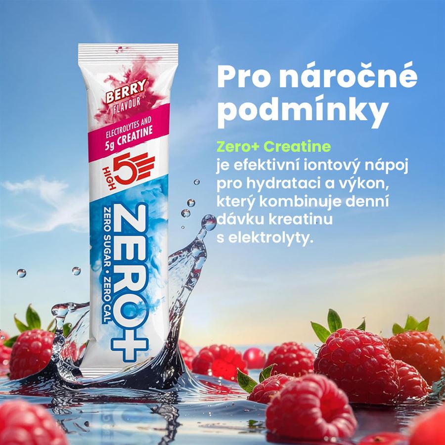 ZERO+ Creatine 16 x 11,5gDoplněk stravy. Se sladidly.Zero+ Creatine je efektivní iontový nápoj pro hydrataci a výkon, který kombinuje denní dávku kreatinu s elektrolyty. Zero+ Creatine spojuje výhody hydratace, výkonu a podpory soustředění v jednom jednoduchém denním sáčku. Díky 5 g kreatinu v každém sáčku vás Zero+ Creatine podpoří i v těch nejnáročnějších trénincích a pomůže vám dosahovat cílů – malých i velkých.Kreatin zvyšuje fyzický výkon při opakovaných krátkodobých, vysoce intenzivních aktivitách. Každodenní užívání kreatinu může u dospělých nad 55 let posílit účinek silového tréninku na svalovou sílu. Ať už se připravujete na dlouhé vytrvalostní závody, trénujete v horkém počasí nebo potřebujete silnější podporu hydratace, Zero+ Ultra Electrolytes poskytuje hydrataci, která jde nad rámec základů.Na rozdíl od běžných mass-marketingových produktů, ZERO+ electrolytes tabs neobsahuje umělá barviva + stabilizátory, produkt je lehce doslazen steviol-glykosidy a minimalizovaným aditivem sukralózy. Hlavní benefity - Hydratace + kreatin + podpora soustředění v jednom sáčku- 5 g kreatinu v jedné dávce- Hořčík, draslík, vápník, sodík- Maltodextrin- Vitamín B2- Předem odměřená dávka pro snadné a konzistentní každodenní užívání- Vhodné pro vegany- Navrženo pro každodenní sportovce, běžce a ženy hledající podporu síly- Praktická jednorázová balení (sáčky) Obsažené složky / 1 sáček: - Kreatin - podpora výkonu, tvorba ATP- Sacharidy (maltodextrin) - energetická hladina, glykogen- Hořčík (bysglicinát hořečnatý, citrát hořečnatý) - Draslík (chlorid draselný) - nezbytný elektrolyt- Chlorid (chlorid sodný) - nezbytný elektrolyt- Sodík (chlorid sodný) - nezbytný elektrolyt- Vitamín B2 - energetický metabolismus, přeměna živin na energii Balení: 16 x 11,5 g (184 g) Dávkování: 11,5 g (celý obsah sáčku) smíchejte se 400-500 ml vody. Konzumujte 1 sáček denně. Upozornění: Skladujte v suchu, chladu, mimo dosah dětí. Nepřekračujte doporučenou denní dávku. Není náhrada pestré stravy. Aktivní látky: v jendom sáčku (11,5 g) (% RHP*) Hořčík 150 mg (40 %*) Draslík 300 mg (15 %*) Chloridy 272 mg (34 %*) Vitamín B2 0,69 mg (50 %*) Sodík 300 mg Kreatin 5 g *% referenční hodnoty příjmu vitamínů a minerálních látek. Složení: kreatin monohydrát, maltodextrin, regulátor kyselosti (kyselina citrónová), bisglycinát hořečnatý, citrát sodný, chlorid draselný, hořečnaté soli kyseliny citrónové, chlorid sodný, vitamín B2 (riboflavin), přírodní aromata, prášek ze šťávy červené řepy, protispékavá látka oxid křemičitý, sladidla (steviol-glykosidy, sukralóza).