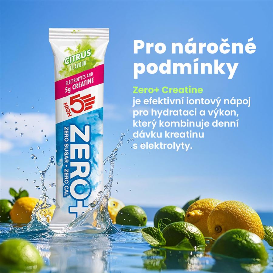 ZERO+ Creatine 16 x 11,5gDoplněk stravy. Se sladidly.Zero+ Creatine je efektivní iontový nápoj pro hydrataci a výkon, který kombinuje denní dávku kreatinu s elektrolyty. Zero+ Creatine spojuje výhody hydratace, výkonu a podpory soustředění v jednom jednoduchém denním sáčku. Díky 5 g kreatinu v každém sáčku vás Zero+ Creatine podpoří i v těch nejnáročnějších trénincích a pomůže vám dosahovat cílů – malých i velkých.Kreatin zvyšuje fyzický výkon při opakovaných krátkodobých, vysoce intenzivních aktivitách. Každodenní užívání kreatinu může u dospělých nad 55 let posílit účinek silového tréninku na svalovou sílu. Ať už se připravujete na dlouhé vytrvalostní závody, trénujete v horkém počasí nebo potřebujete silnější podporu hydratace, Zero+ Ultra Electrolytes poskytuje hydrataci, která jde nad rámec základů.Na rozdíl od běžných mass-marketingových produktů, ZERO+ electrolytes tabs neobsahuje umělá barviva + stabilizátory, produkt je lehce doslazen steviol-glykosidy a minimalizovaným aditivem sukralózy. Hlavní benefity- Hydratace + kreatin + podpora soustředění v jednom sáčku- 5 g kreatinu v jedné dávce- Hořčík, draslík, vápník, sodík- Maltodextrin- Vitamín B2- Předem odměřená dávka pro snadné a konzistentní každodenní užívání- Vhodné pro vegany- Navrženo pro každodenní sportovce, běžce a ženy hledající podporu síly- Praktická jednorázová balení (sáčky) Obsažené složky - Kreatin - podpora výkonu, tvorba ATP- Sacharidy (maltodextrin) - energetická hladina, glykogen- Hořčík (bysglicinát hořečnatý, citrát hořečnatý) - Draslík (chlorid draselný) - nezbytný elektrolyt- Chlorid (chlorid sodný) - nezbytný elektrolyt- Sodík (chlorid sodný) - nezbytný elektrolyt- Vitamín B2 - energetický metabolismus, přeměna živin na energii Balení: 16 x 11,5 g (184 g) Dávkování: 11,5 g (celý obsah sáčku) smíchejte se 400-500 ml vody. Konzumujte 1 sáček denně. Upozornění: Skladujte v suchu, chladu, mimo dosah dětí. Nepřekračujte doporučenou denní dávku. Není náhrada pestré stravy. Aktivní látky: v jendom sáčku (11,5 g) (% RHP*) Hořčík 150 mg (40 %*) Draslík 300 mg (15 %*) Chloridy 272 mg (34 %*) Vitamín B2 0,69 mg (50 %*) Sodík 300 mg Kreatin 5 g *% referenční hodnoty příjmu vitamínů a minerálních látek. Složení: kreatin monohydrát, maltodextrin, regulátor kyselosti (kyselina citrónová), bisglycinát hořečnatý, citrát sodný, chlorid draselný, hořečnaté soli kyseliny citrónové, chlorid sodný, vitamín B2 (riboflavin), přírodní aromata, protispékavá látka oxid křemičitý, sladidla (steviol-glykosidy, sukralóza).